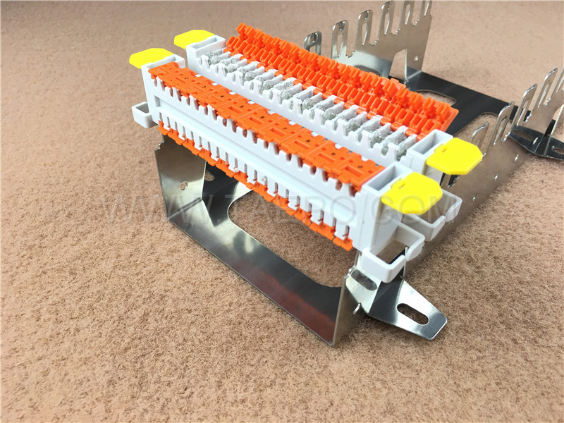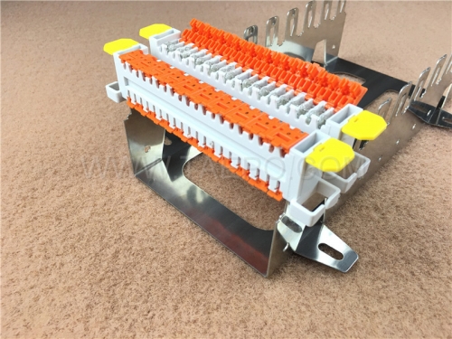 10 pairs QCS back mount frame 10 ways (TP-1333-10-10) is used as to install the QCS modules, with the function of wiring. It is usually mounted onto the back plate in the Main Distribution Frame (MDF) or Cross Connection Cabinet (CCC) or just installed into the Distribution Point Boxes (DP). It belongs to the accessories for the copper connectivity. The frame holds 10 QCS modules (totaling 100 pairs) and is structured for easy access to jumper wires, earth bars, and test cords.