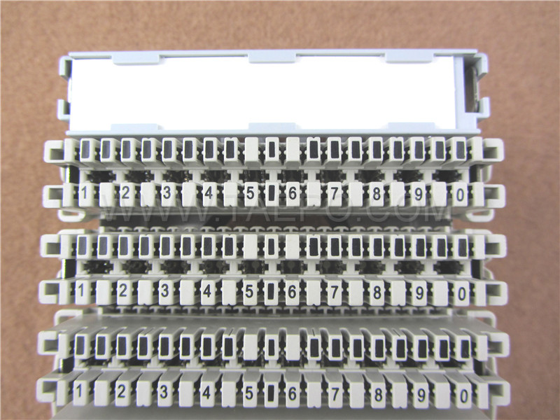 Normally the 100 pairs connection blocks are used on the horizontal side of the Main Distribution Frame (MDF), which is used for the termination between internal lines and jumper wires. It consists of 10 pieces 10-pair connection modules. The block is suitable for xDSL circuit. Also the blocks are used in Cross Connection Cabinets (CCC), Distribution Point (DP) boxes.