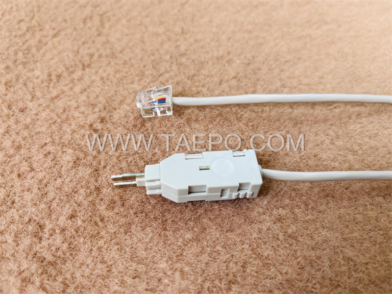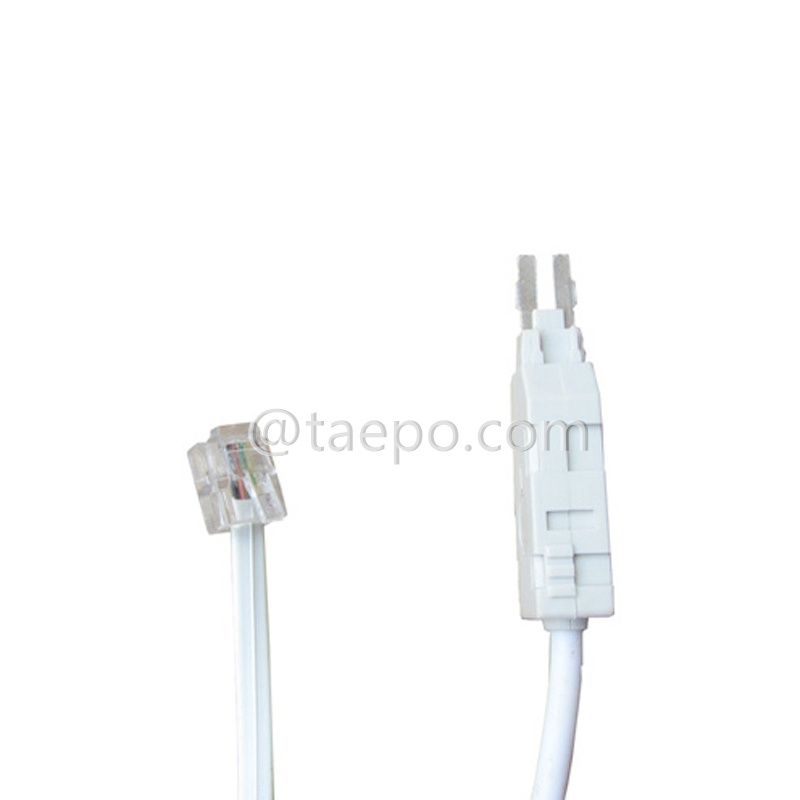 - 6P4C Modular Plug: The other end features a 6P4C modular plug, commonly used for telephone lines and networking applications, with two conductors for basic connections.