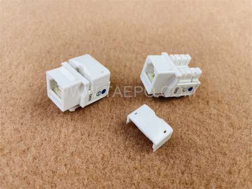 The keystone jack is usually made of plastic and has a rectangular shape with a small opening at the front where the cable is inserted. The contacts inside the jack are designed to make a reliable connection with the wires in the cable, ensuring clear and consistent signal transmission.