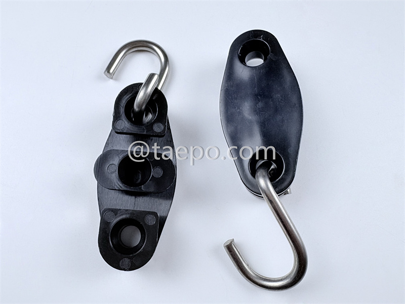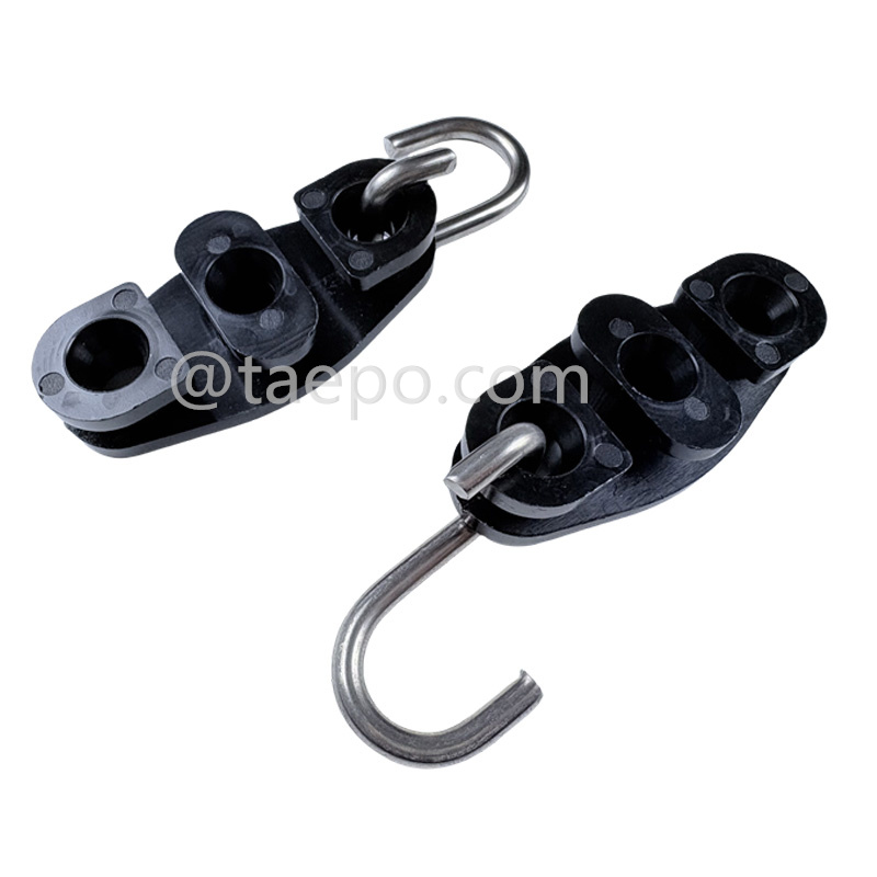 This Bracket Hook (TP-3137) is designed for securing and suspending flat drop cables in fiber optic access networks, especially in FTTH (Fiber to the Home) applications. Its hybrid construction combines the flexibility and insulating properties of high-grade nylon with the strength and corrosion resistance of stainless steel (SS201), offering a durable and stable solution for outdoor or indoor wall-mount installations.
