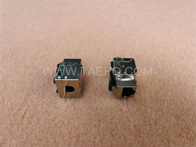A CAT6 RJ45 8P8C 90-degree STP shielded network keystone jack (TP-5202-C6S8) is a type of network connector used in structured cabling systems.