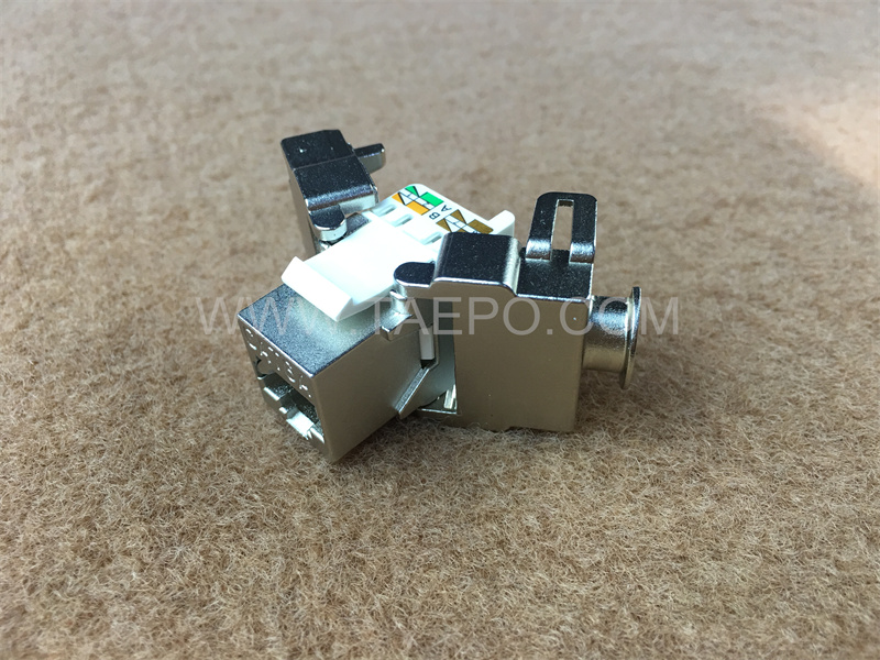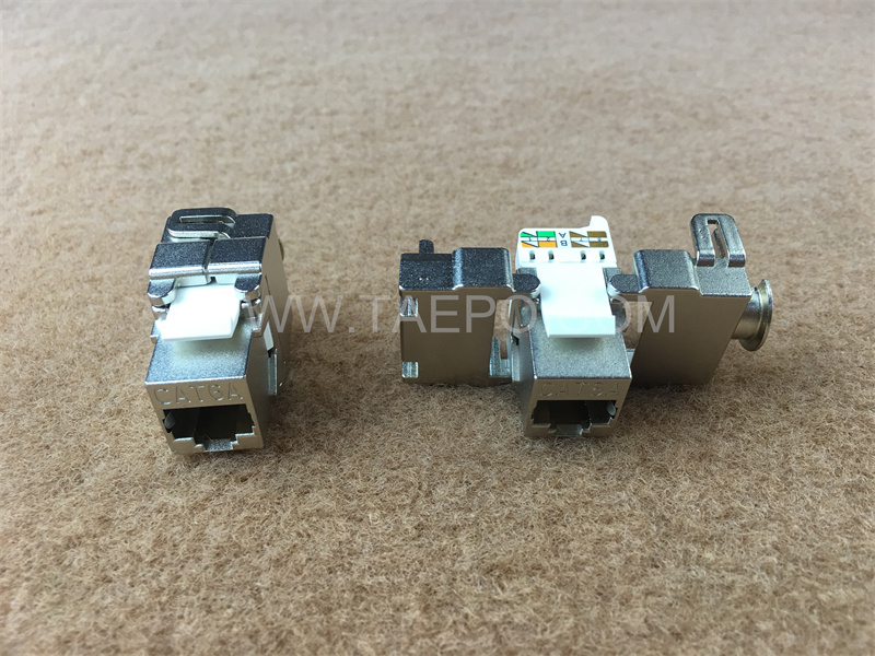 The  "180 degree CAT6A 8P8C RJ45 STP shielded Keystone modular jack"  (TP-5228-C6AS8) refers to a  type of network connector used in structured cabling systems.