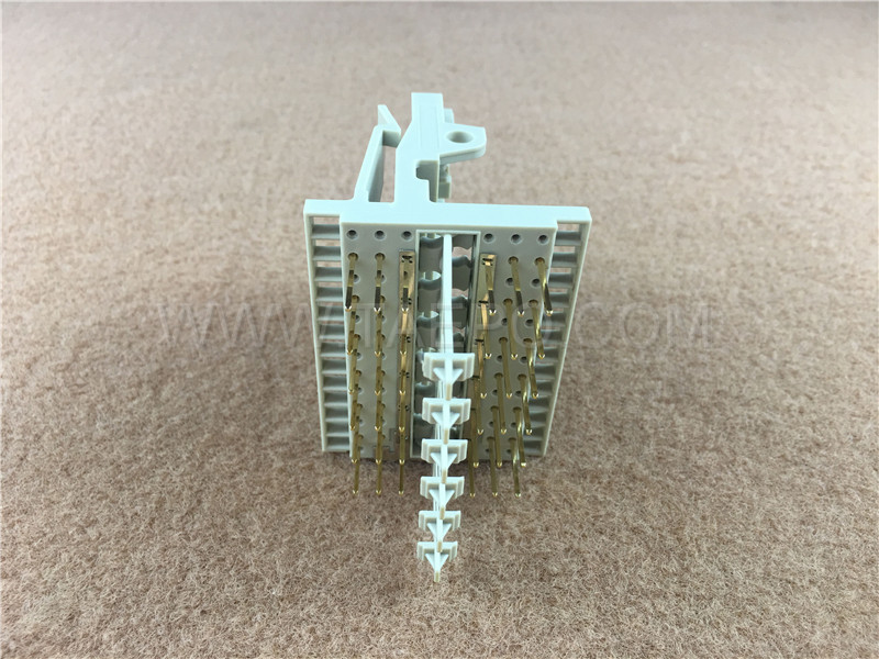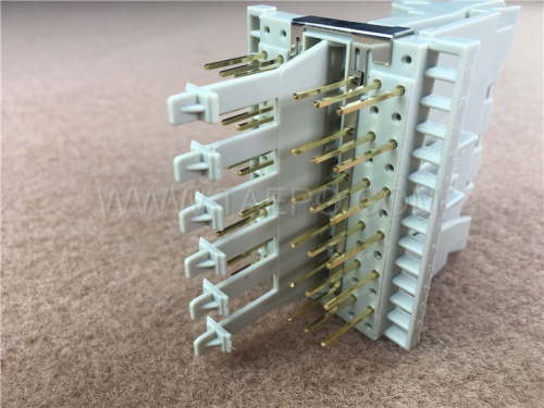 - Gold-Plated Contacts: The contact pins are coated with a high-purity gold layer, which resists corrosion and ensures long-term conductivity. This reduces signal attenuation and maintains low contact resistance over many mating cycles.