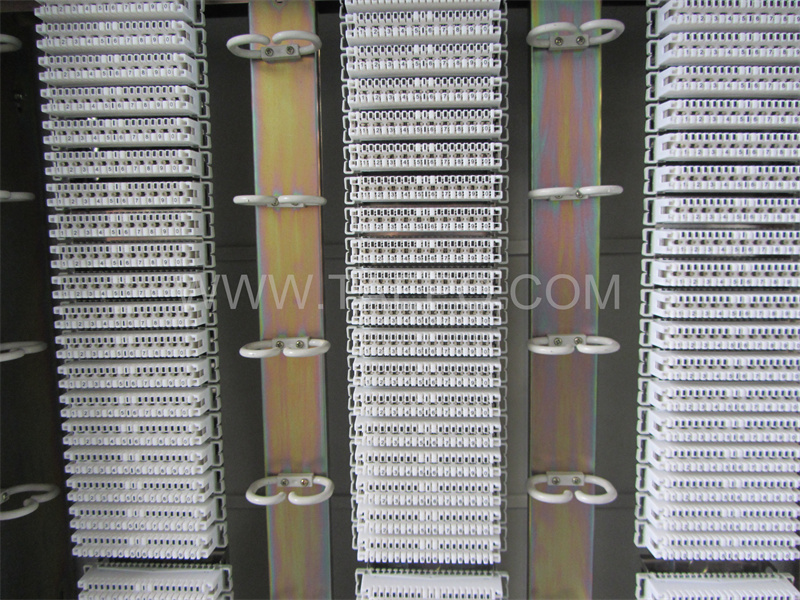 The interior of the cabinet contatins a galvanized steel frame for fixing cable terminal blocks. The frame fastening bars is provided with cables ring and guides for clear and beautiful wiring. On bottom of the frames, cable clmaps are provided to fix the cable.