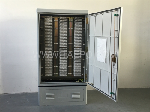 Outdoor 2400 pairs cross connection cabinet / CCC (TP-1803-2400) is used for the cross connection and terminations between trunk/primary cable and the distribution/secondary cables. It is used for outdoor copper cables. It is made of SMC (Sheet Molding Compound / glass fiber reinforced polycarbonate compound) material.