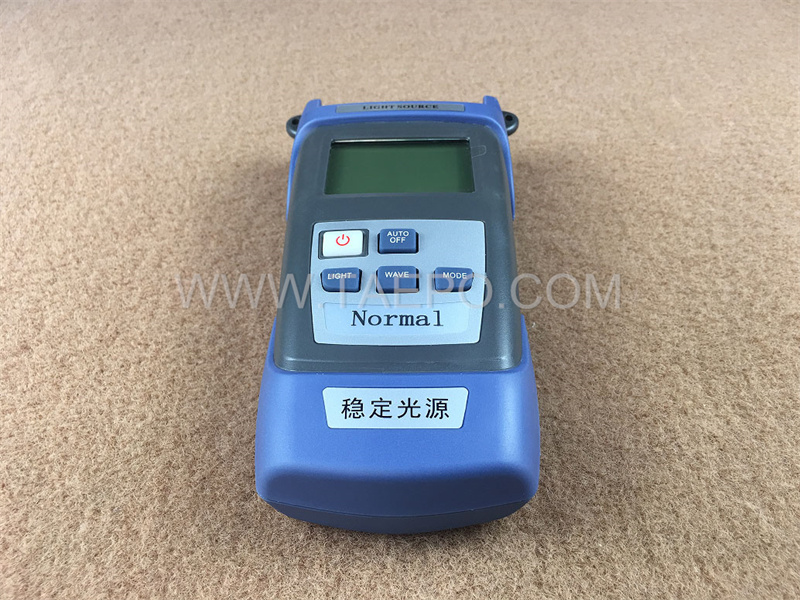 This light source is paired with an optical power meter to measure fiber optic signal loss and other parameters. It generates stable laser or LED light at specific wavelengths, allowing technicians to send this light through the fiber cable and detect how much of it is lost over distance or due to cable faults. The dual-wavelength functionality is useful because different wavelengths behave differently in fiber optics—this helps in identifying different types of issues.