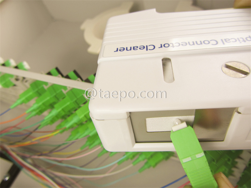 A fiber optic connector cassette tape cleaner pen is a compact cleaning tool designed specifically for cleaning the end-faces of fiber optic connectors. This pen-like device typically uses a cleaning tape that rolls out to provide a clean surface for effective removal of dust and contaminants.