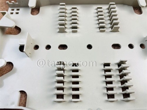 TP-3121-24 holds up to 24 splices sleeves, stacking 2 layers, and several trays could be stacked together to splice a large fiber cable. Each tray provides space for mounting fiber splice protectors and excess fiber.