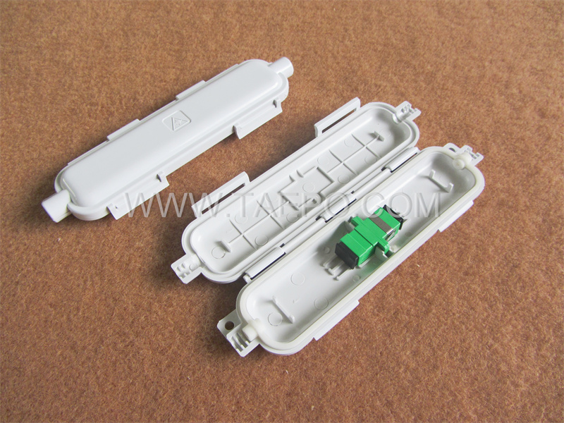 Drop cable splice box, outdoor, 160x47x17mm, SC, 1 inlet 1 oulet, without adapter