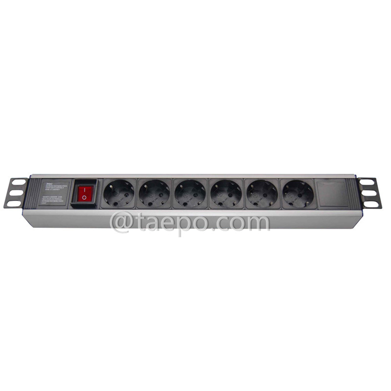 TP-5606-6GER15S           PDU, Germany standard, 16A 250VAC, 6 ways, 1.5U, with master switch, 3 cores x 2.5mm2 x 2m cord, German plug, AL alloy housing