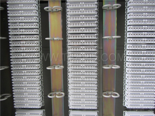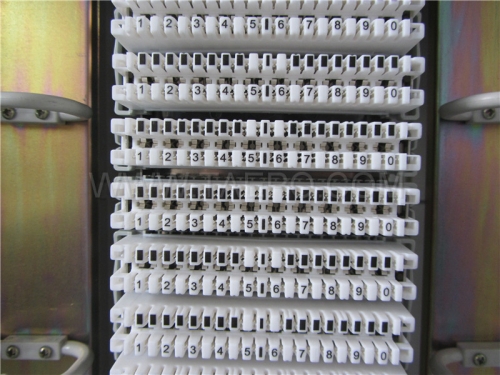 The interior of the cabinet contatins a galvanized steel frame for fixing cable terminal blocks. The frame fastening bars is provided with cables ring and guides for clear and beautiful wiring. On bottom of the frames, cable clmaps are provided to fix the cable.