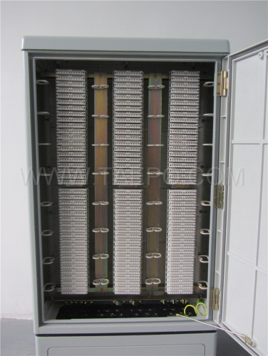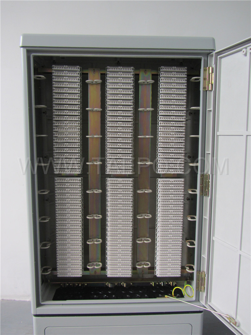 TP-1803-1200 Outdoor 1200 pairs cross connection cabinet, SMC housing, with base, for LSA module, 400pairs x 3 columns, 1450(H) x 750(W) x 320(D)mm, with 1200P back mount frame, cable clamp, cable rings, without LSA modules