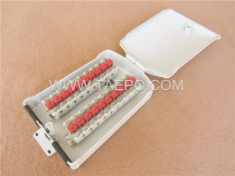Outdoor 20 pairs terminal box (TP-1714-20MG) is used in terminating cables of secondary telephone networks to the cable pairs of subscriber lines.