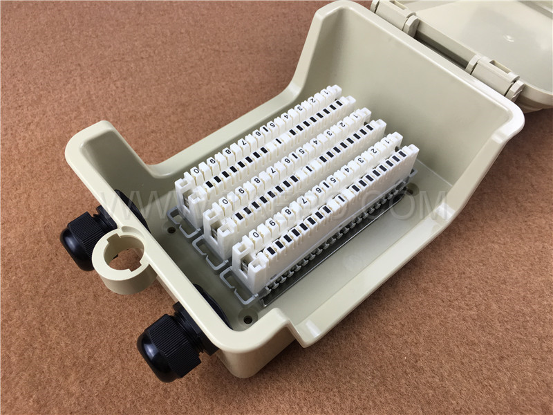 This outdoor 30 pairs DP box (TP-1707-30) is used in terminating cables of secondary telephone networks to the cable pairs of subscriber lines. It is fixed with 10 pair adc krone module.