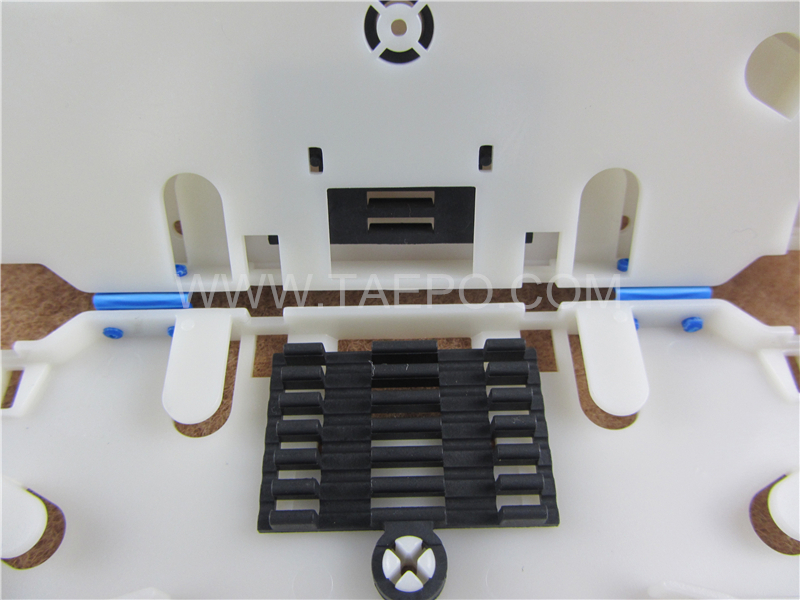 Plastic hinge (TP-3115-12-P5) is used between 2 bases of fiber optic splice tray #TP-3115.