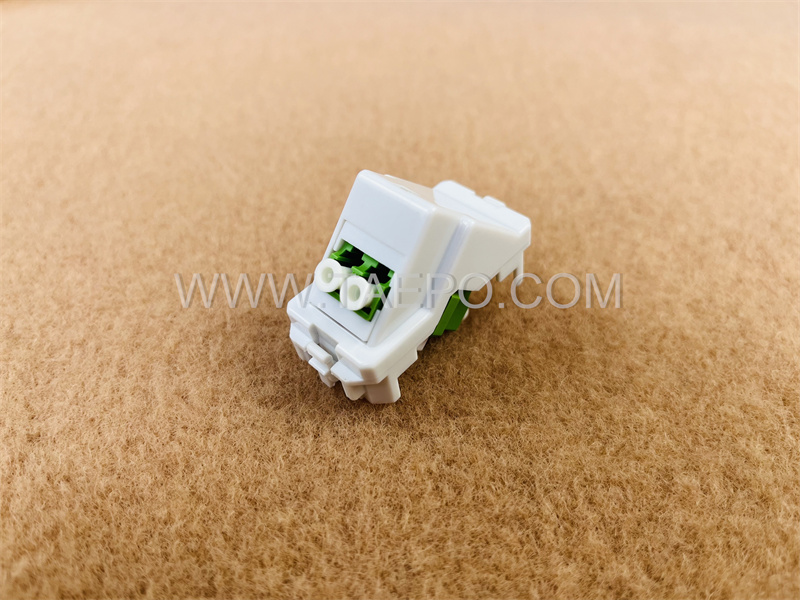 Engineered for compatibility and long-term use, the plastic insert with LC/APC duplex adapter is suitable for both indoor and outdoor fiber optic networks. Its secure snap-in mechanism ensures a stable fit in various patch panels or wall plates, providing reliable fiber connectivity for systems ranging from small office environments to large-scale data centers.