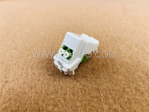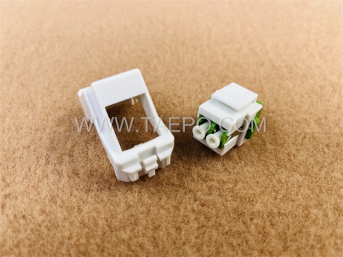 The plastic insert with an LC/APC duplex adapter (TP-3329-2LC) is a critical component used in fiber optic networking. This insert is designed to fit seamlessly into outlet for telecommunications and data applications, providing a secure and efficient connection point for LC/APC duplex connectors. With its lightweight yet durable plastic body, the insert ensures easy handling during installation while maintaining optimal performance for high-speed data transmissions.