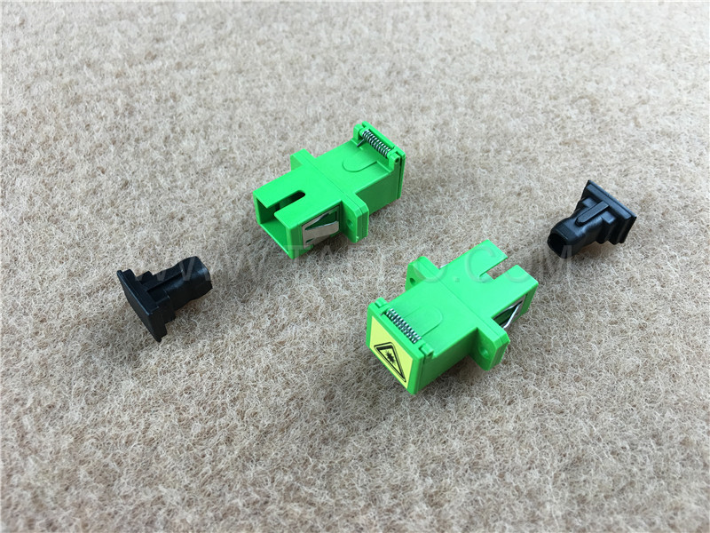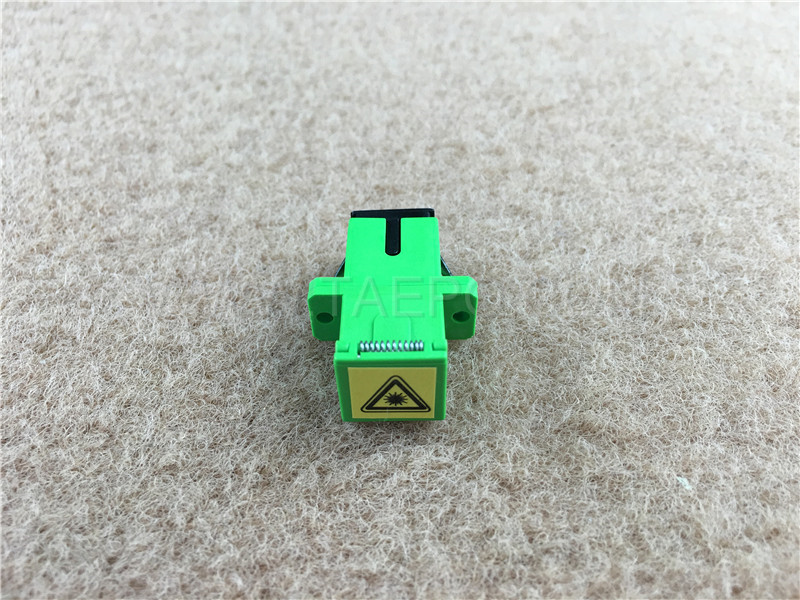 A fiber optic SC APC adapter connects two fiber optic connectors in the fiber optic lines.
