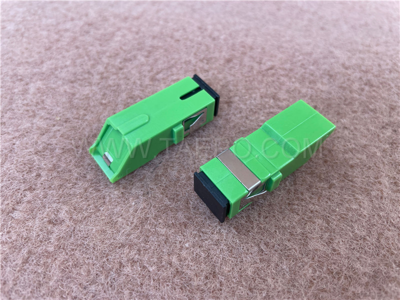 A fiber optic SC APC adapter connects two fiber optic connectors in the fiber optic lines.