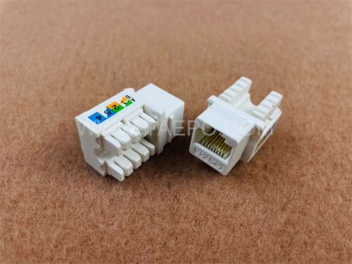 CAT5E UTP keystone jacks are designed for use with CAT5E Ethernet cables, which support data rates up to 1 Gbps (Gigabit per second) and frequencies up to 100 MHz. The keystone jack follows the T568A or T568B wiring scheme, which determines the pinout of the connector and affects how the cable is terminated.